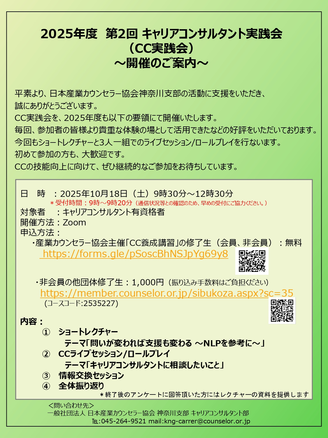 2025年度 第2回 キャリアコンサルタント実践会(CC実践会)